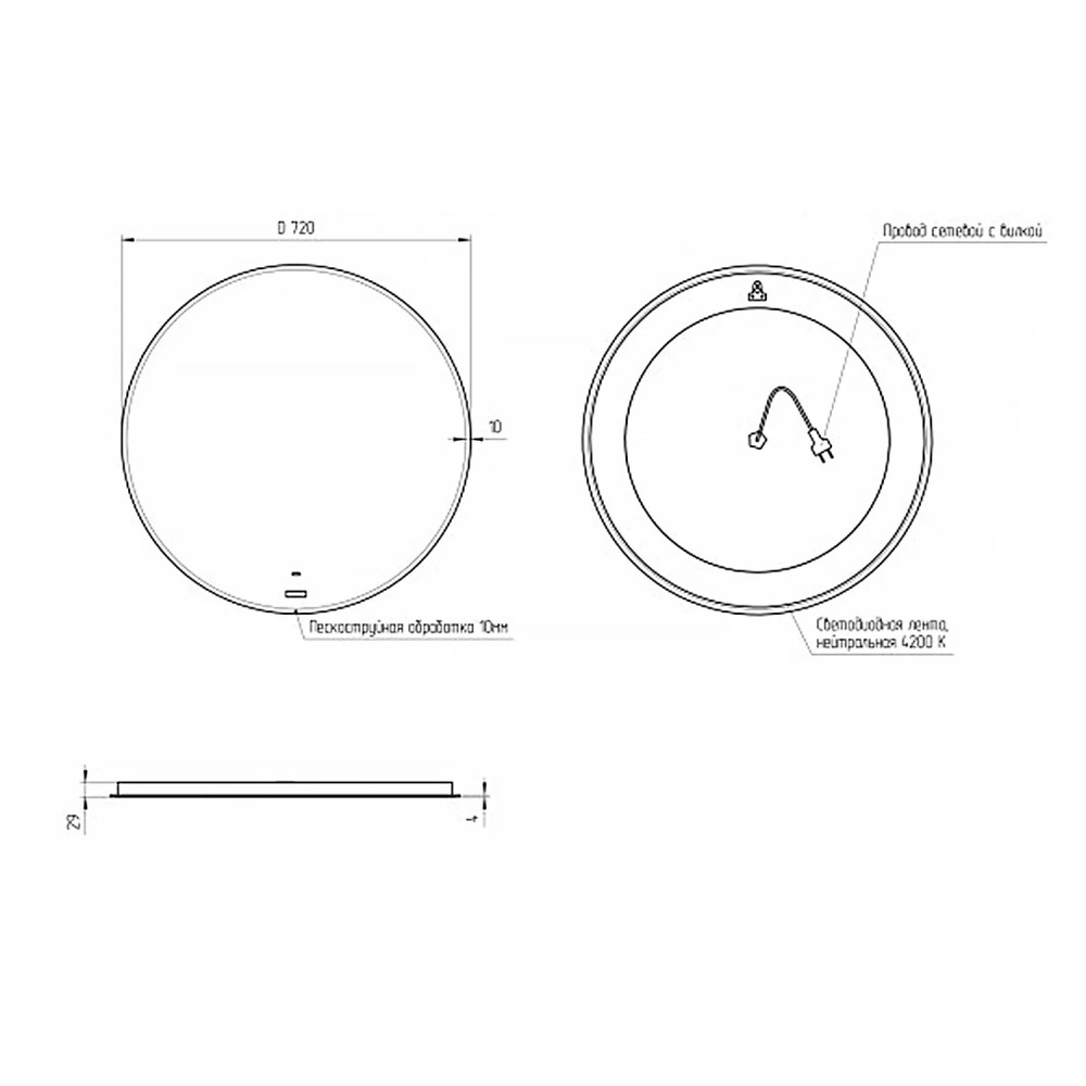 Габариты 2 × 72 × 72 см
